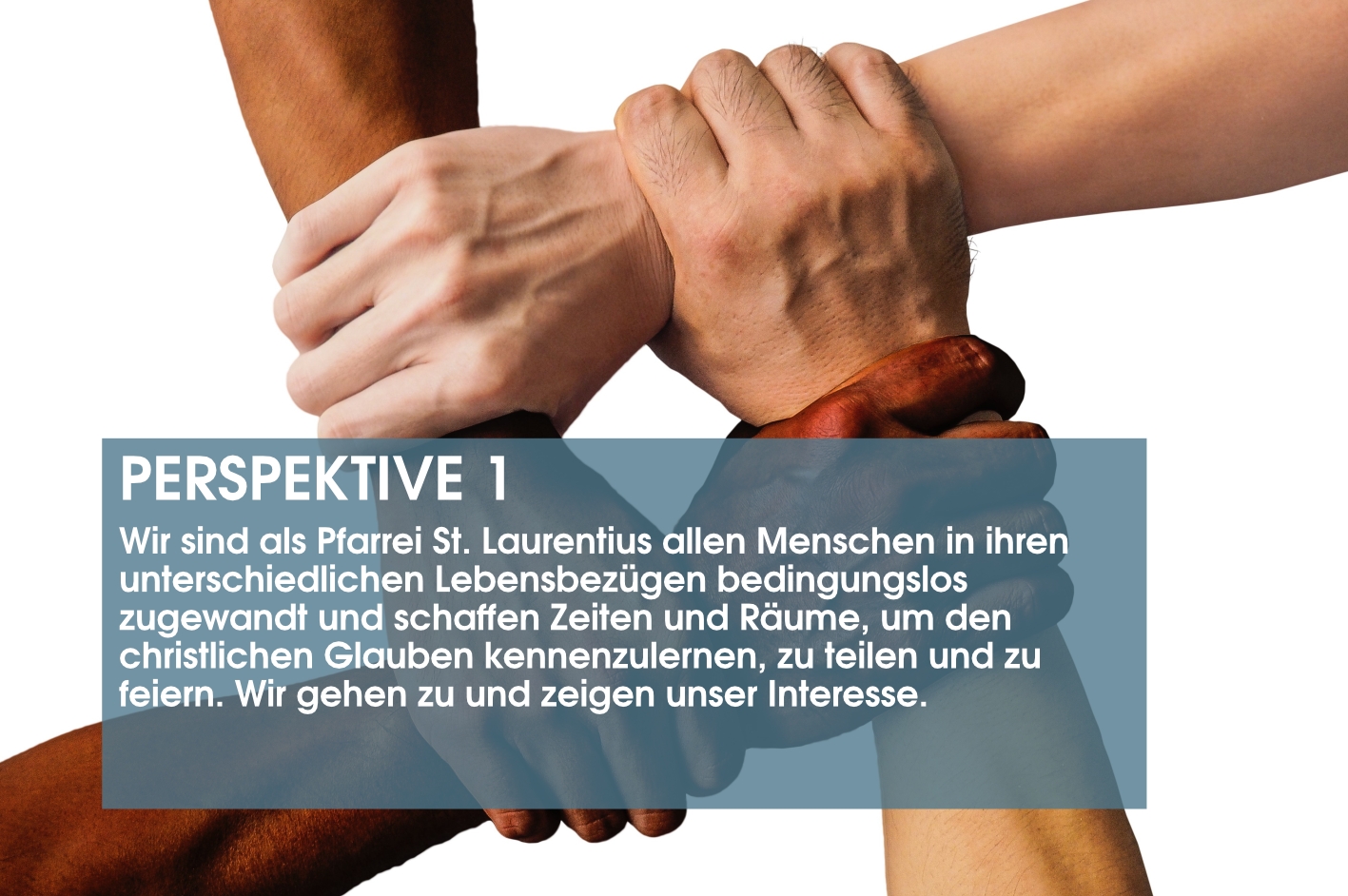 Es besteht aus vier Kreisen für die vier Gemeinden unserer Pfarrei, von denen jeder seine eigene Farbe hat. Sie verschmelzen nicht nur zu einem Kreis, sie existieren aber auch nicht isoliert voneinander, sondern sie berühren und überschneiden sich, wodurch das Kreuz als Zentrum der neuen Pfarrei sichtbar wird.